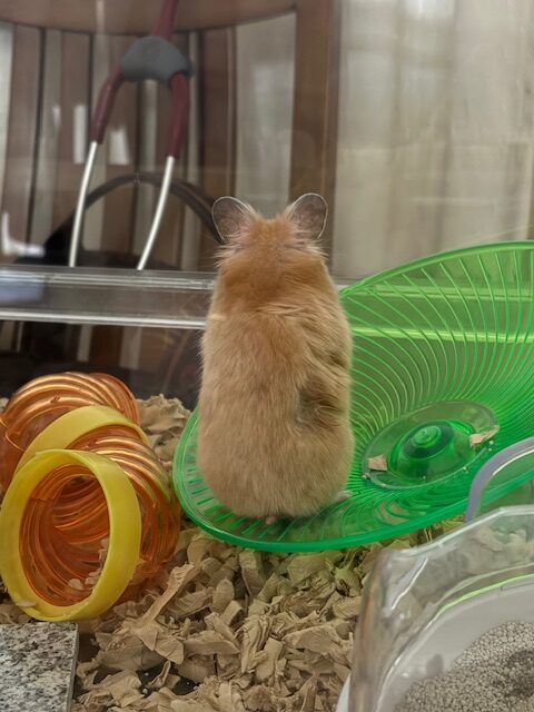 ライムは今年で2年目。おじいちゃんハムスターですが、まだまだ元気いっぱいで、回し車で走る姿も見られます。